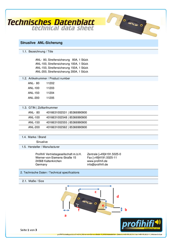 Bezpiecznik Sinuslive z automatycznym ogranicznikiem szumów(ANL), 150A