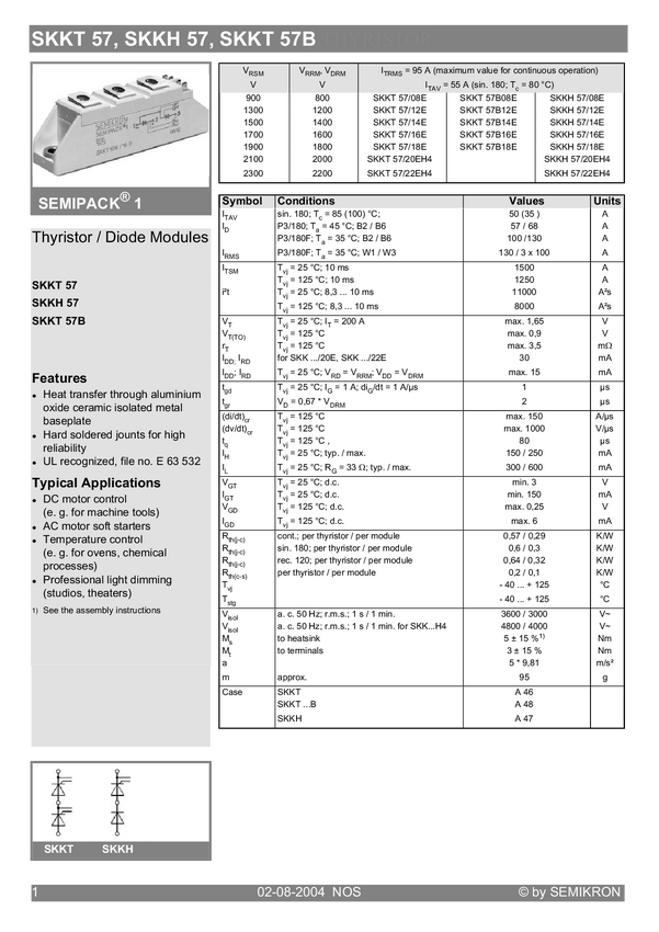 SKKT57/12E Moduł tyrystorowy/diodowy SEMIPACK® SKKT57/12E Semikron SKKT57/12E SEMIPACK...