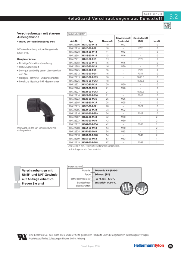 166-22201 Dławica wężowa kątowa HellermannTyton HelaGuard HG13-90-M16, O 9,8 mm, czar...