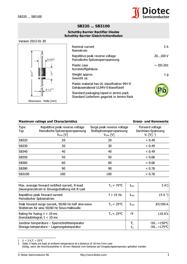 Dioda Schottky'ego Diotec SB3100 N/A N/A N/A