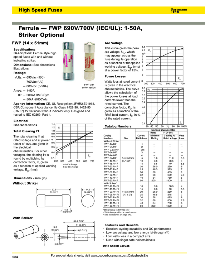 FWP-25A14FA Bussmann by Eaton FWP-25A14FA FWP-25A14FA Bezpiecznik (Ø x D) 14 mm x 51 mm...