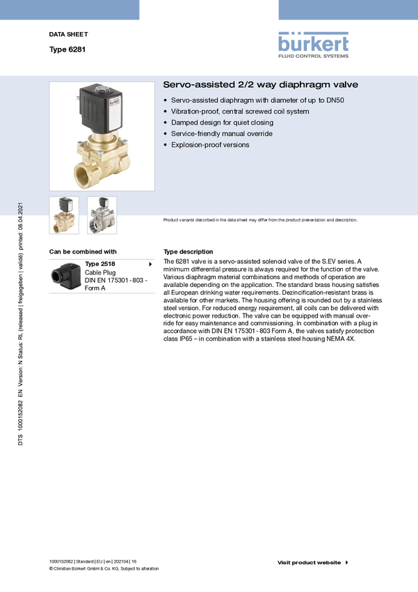 221952 Serwozawór sterowany Bürkert 6281 EV 221952, 0.2 do 16 bar