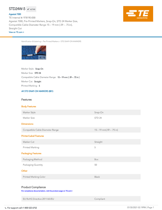 978190-000 TE Connectivity TE RAY Cable Identification - Non-Computerized 978190-000,...
