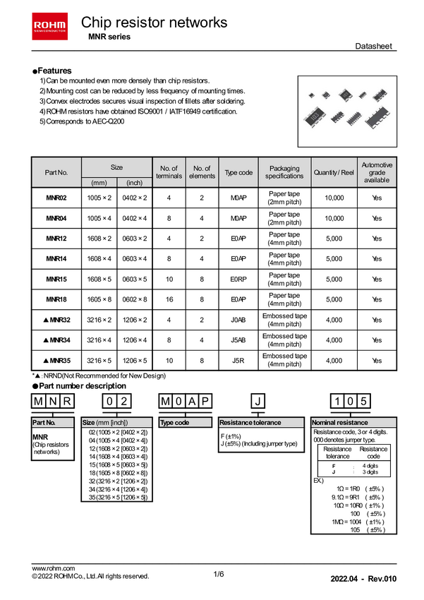 MNR14E0APJ101 Drabinka rezystancyjna ROHM Semiconductor MNR14E0APJ101, 1 szt.