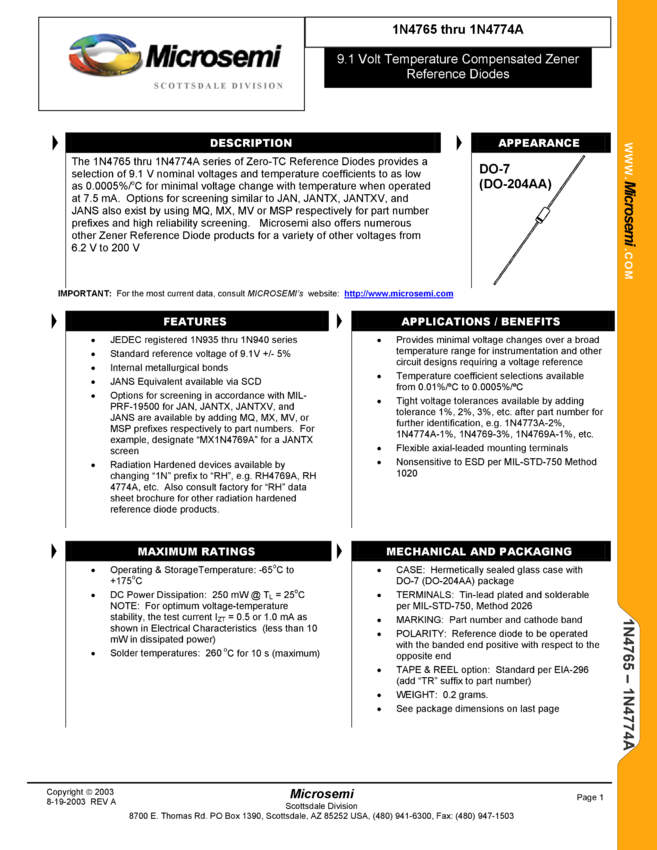 1N4765, 1N4766, 1N4766A, 1N4767, 1N4767A, 1N4768, 1N4768A, 1N4769, 1N4769A, 1N4770, 1N4770A, 1N4771, 1N4771A, 1N4772, 1N4772A, 1N4773, 1N4773A, 1N4774, 1N4774A
