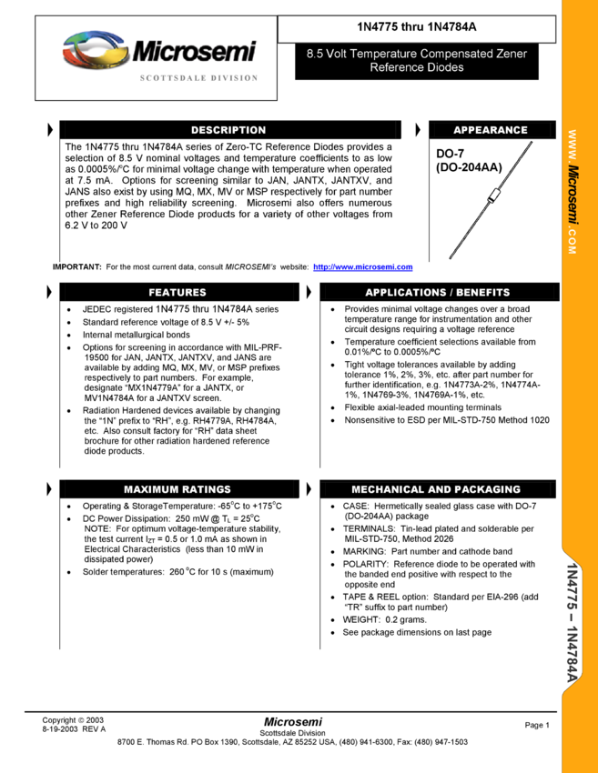 1N4775, 1N4775A, 1N4776, 1N4776A, 1N4777, 1N4777A, 1N4778, 1N4778A, 1N4779, 1N4779A, 1N4780, 1N4780A, 1N4781, 1N4781A, 1N4782A, 1N4783, 1N4783A, 1N4784, 1N4784A