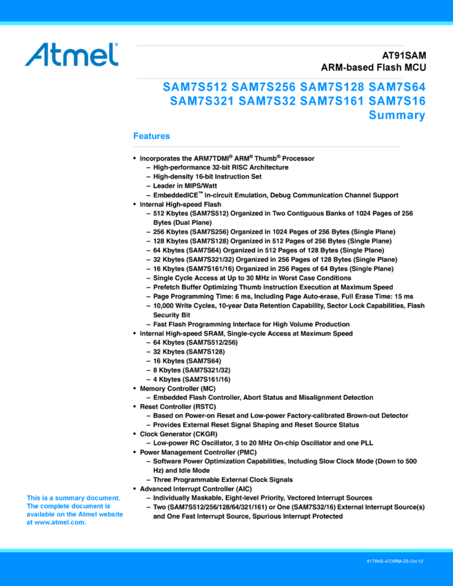 AT91SAM7S128, AT91SAM7S16, AT91SAM7S256, AT91SAM7S32, AT91SAM7S321, AT91SAM7S512, AT91SAM7S64
