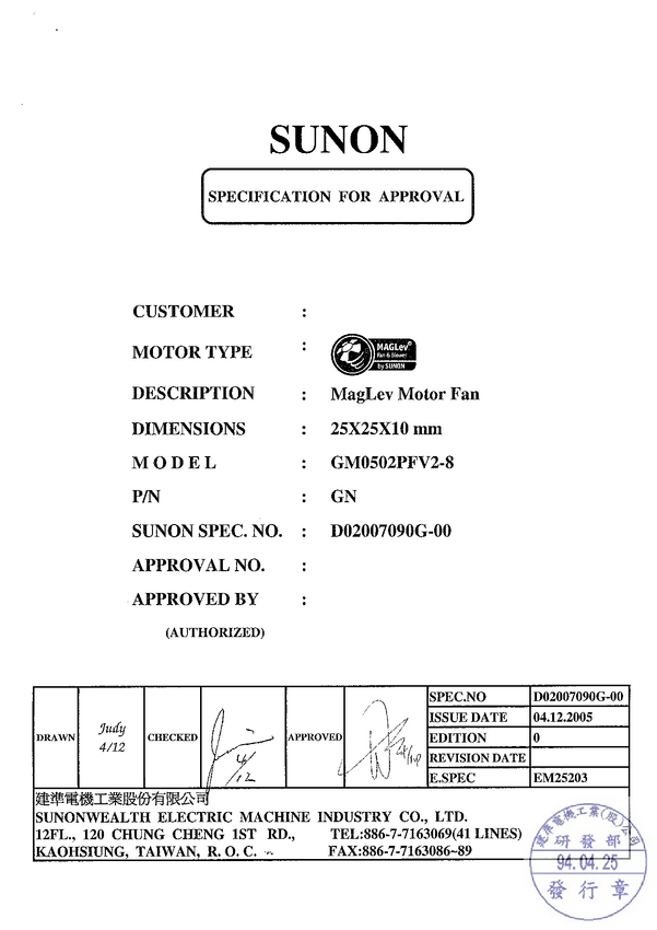 gm0504pev2-8Wentylator 5V; 40x40x6mm; łożysko VAPO (magnetyczne); wydajność 9,34m3/h; poziom hałasu 26dB; prąd I=0,07 A; moc P=0,4 W. Nieprodukowane, do wyczerpania magazynu