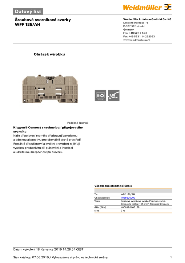 Złączka szynowa przelotowa Weidmüller 1029600000 połączenie śrubowe 2 szt.