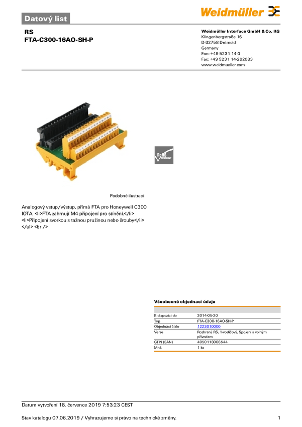 1-drutowe, Złącze swobodne rozłączne FTA-C300-16AO-SH-P Weidmüller Zawartość: 1 szt.