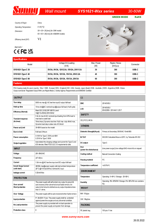Zasilacz ładowarka sieciowa USB-C 5V/3A, 9V/3A, 12V/3A, 15V/3A, 20V/2.2A 45W | PD 3.0, QC 3.0