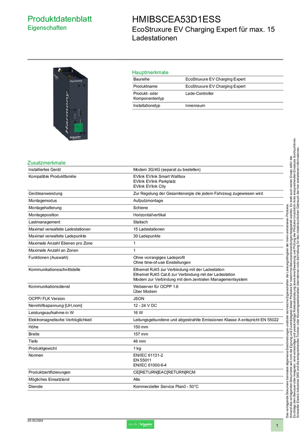 Schneider Electric HMIBSCEA53D1ESM Urządzenie ładujące