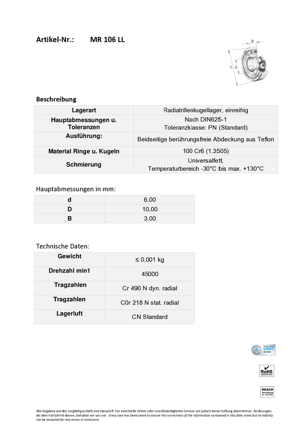 Łozysko kulkowe Reely MR 106 LL, Szerokość: 3 mm, 1 szt.