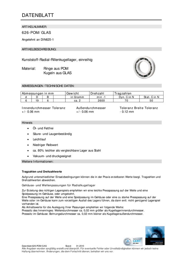 Łozysko kulkowe Reely 626 KU, Szerokość: 6 mm, 1 szt.