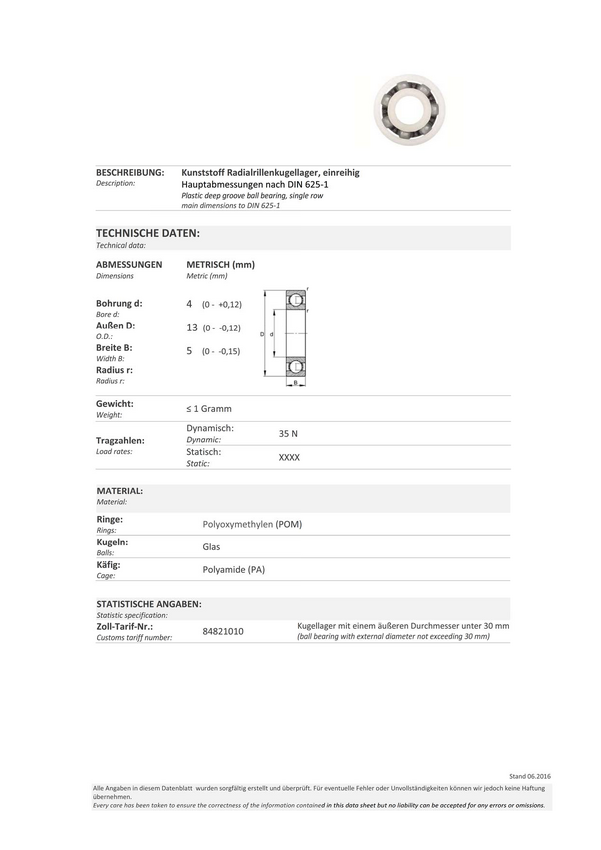 Łozysko kulkowe Reely 624 KU, Szerokość: 5 mm, 1 szt.
