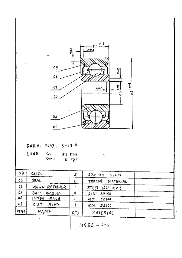 Łozysko kulkowe Reely MR 85 LL, Szerokość: 2.5 mm, 1 szt.