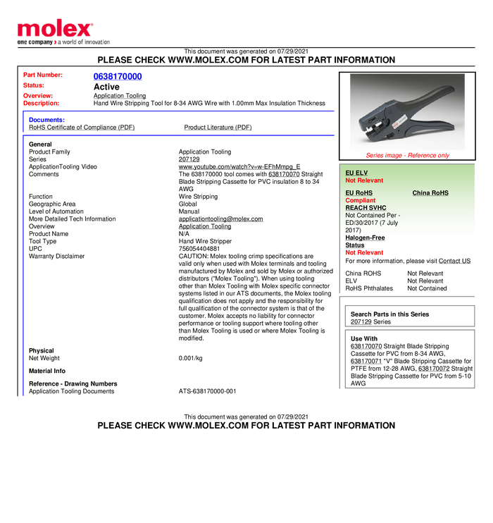 Molex Molex MOL Power & Signal Sol. 638170000 Ściągacz izolacji
