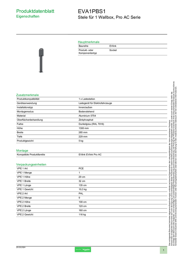 Stelaż do skrzynki ściennej Schneider Electric EVA1PBS1