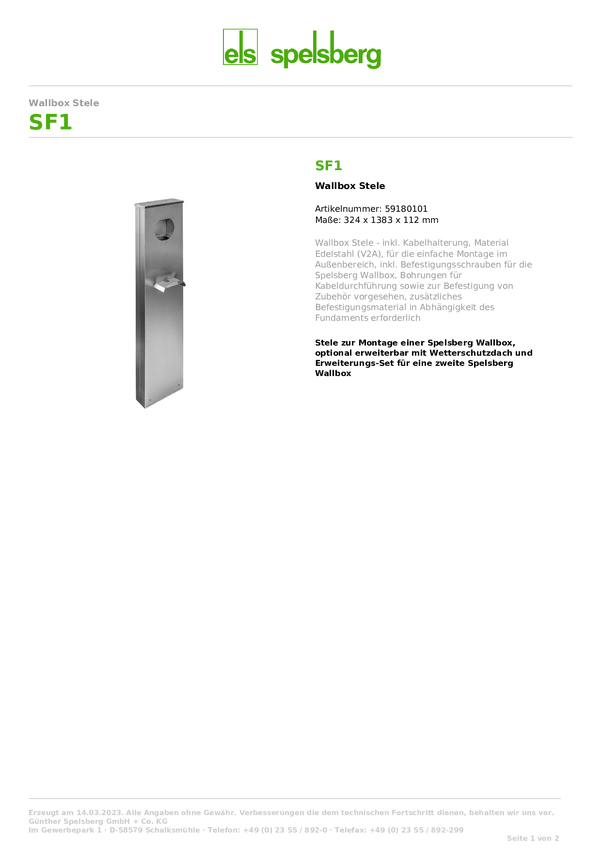 Stelaż do skrzynki ściennej Spelsberg SF1