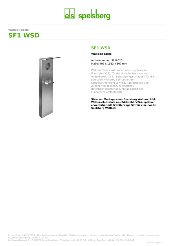 Stelaż do skrzynki ściennej Spelsberg SF1 WSD
