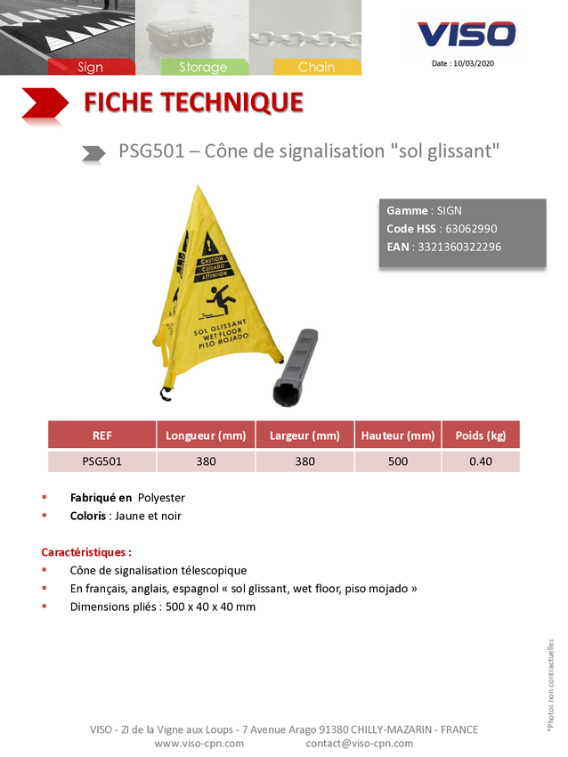 POP stożek „antypoślizgowe dno” VISO PSG501 Poliester (S x W) 380 mm x 500 mm