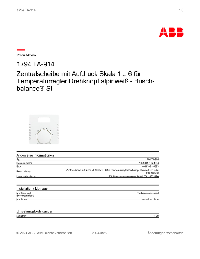 Busch-Jaeger Zaślepka Termostat Busch-balance SI śnieżnobiały 1794 TA-914 1 szt.