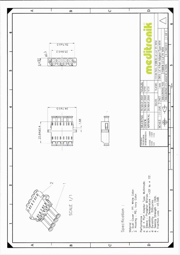 Adapter światłowodowy LC/UPC SM Quad jednomodowy