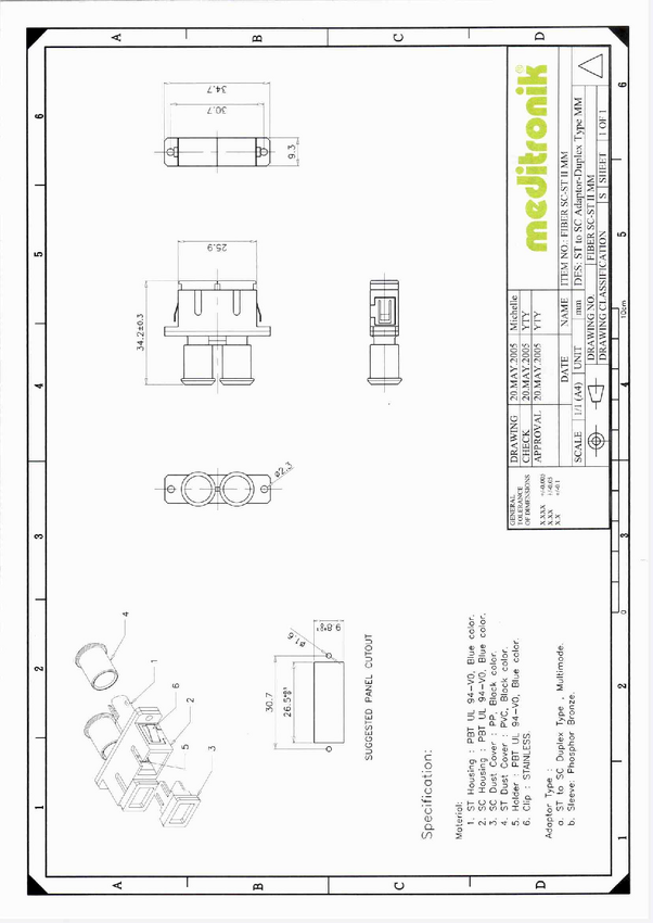 Adapter światłowodowy SC-SC simplex SM Flangeless