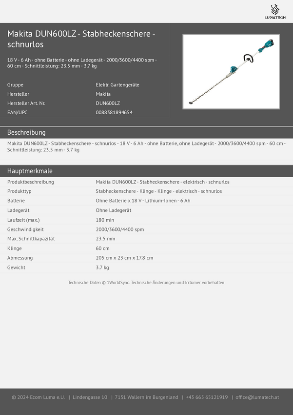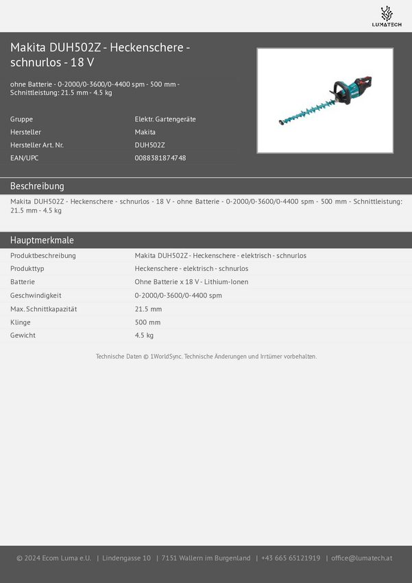 Makita S_0380_7286445 akumulatorowy Nożyce do żywopłotu bez akumulatora, Bez ładowarki 18 V 600 mm