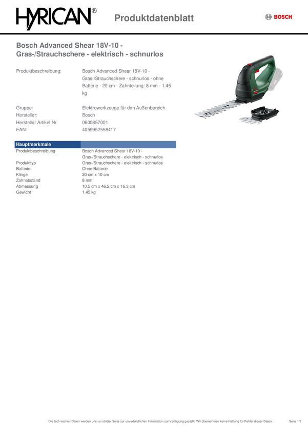 Nożyce do trawy, Nożyce do krzewów Bosch Home and Garden AdvancedShear 18-10 Solo bez akumulatora, Bez ładowarki 18 V Li