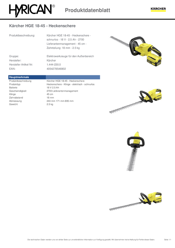 Kärcher Home & Garden Kärcher akumulatorowy Nożyce do żywopłotu 18 V Li-Ion