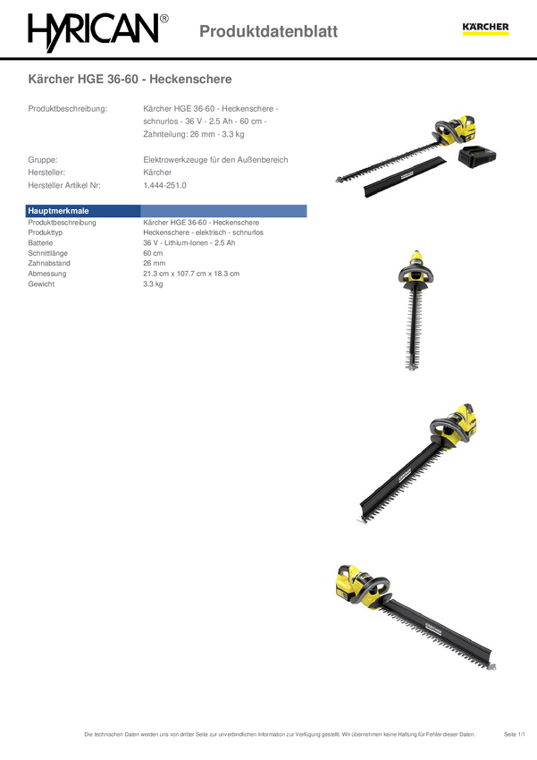 Kärcher Heckenschere HGE 36-60 Battery akumulatorowy Nożyce do żywopłotu 36 V Li-Ion