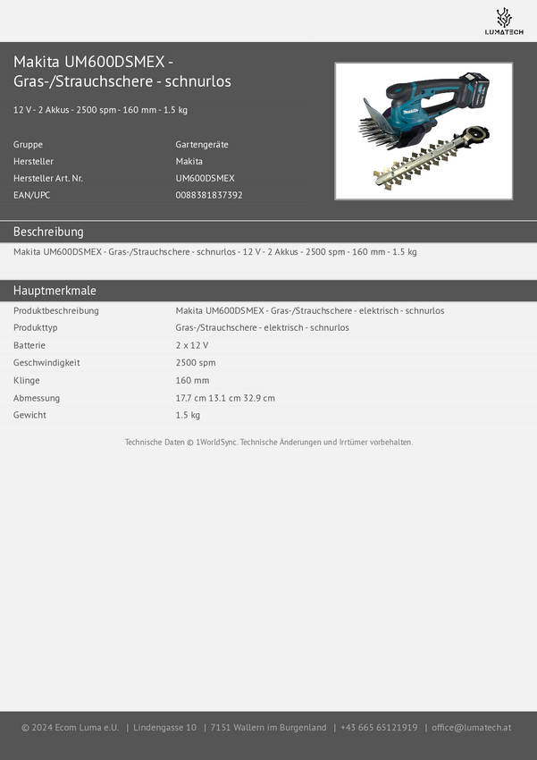 Nożyce do trawy, Nożyce do krzewów Makita S_0380_5452586 10.8 V Li-Ion