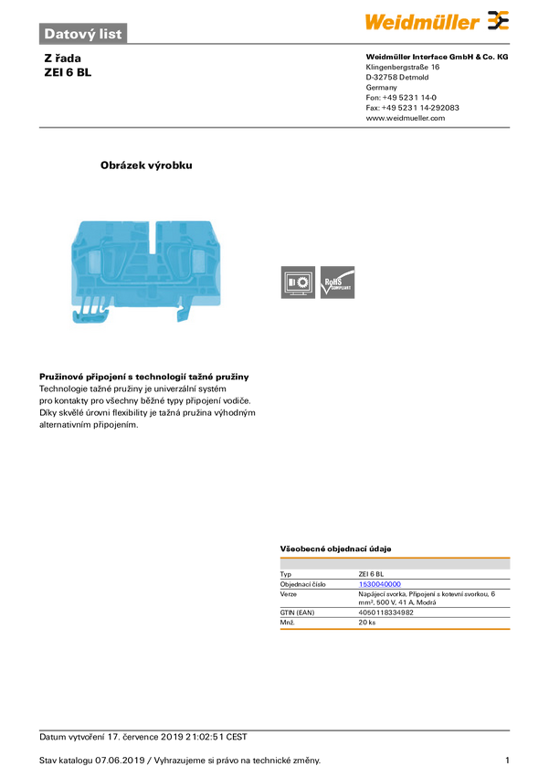Terminal zasilający Weidmüller 1530040000 sprężynowe 20 szt.