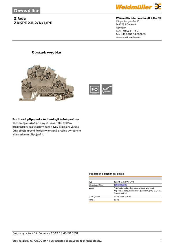 Terminal przewodzący, ochronny Weidmüller 1895700000 sprężynowe 50 szt.