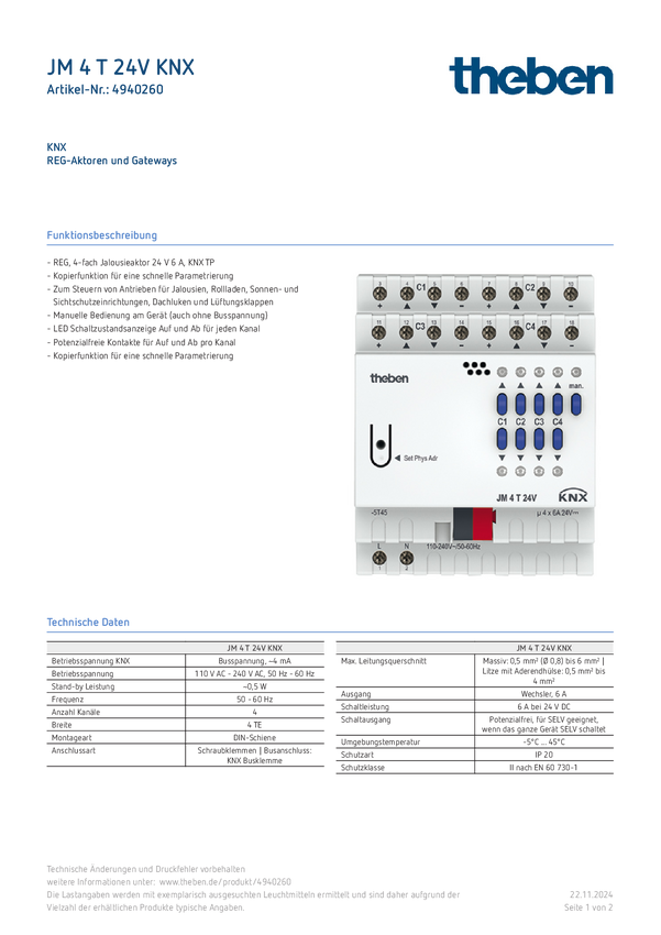 Napęd żaluzji Theben 4940260 JM 4 T 24V KNX