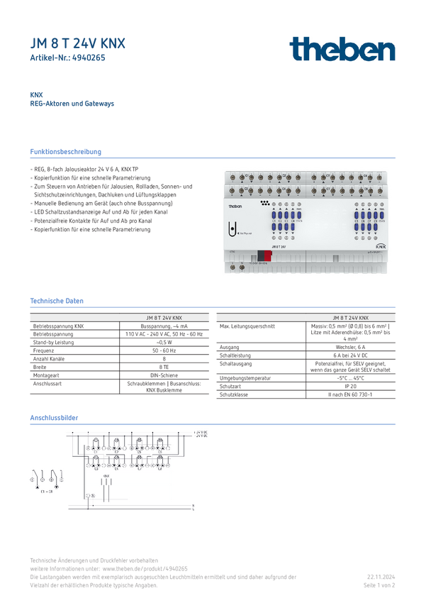 Napęd żaluzji Theben 4940265 JM 8 T 24V KNX