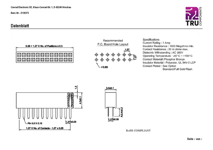 TRU COMPONENTS TC-2506277 Listwa kołkowa, żeńska, standardowa 1 szt.