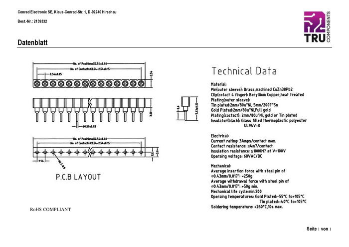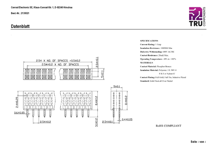 TRU COMPONENTS TC-2506414 Listwa złączy żeńskich (precyzyjna) 1 szt.