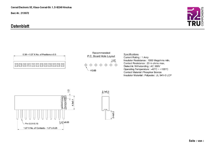 TRU COMPONENTS TC-2506445 Listwa złączy żeńskich (standardowa) 1 szt.