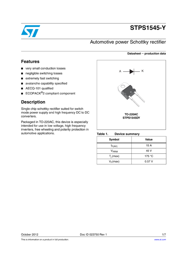 Automotive power Schottky rectifier