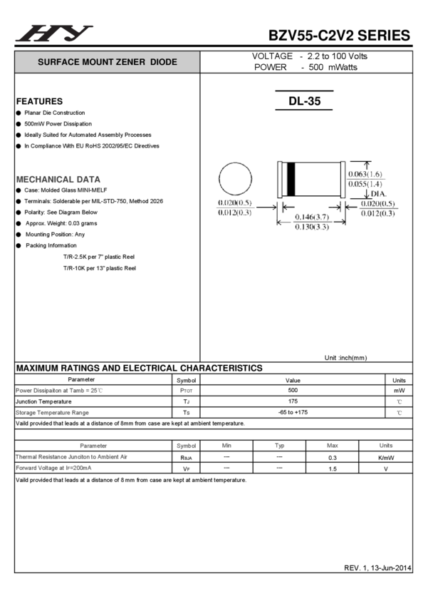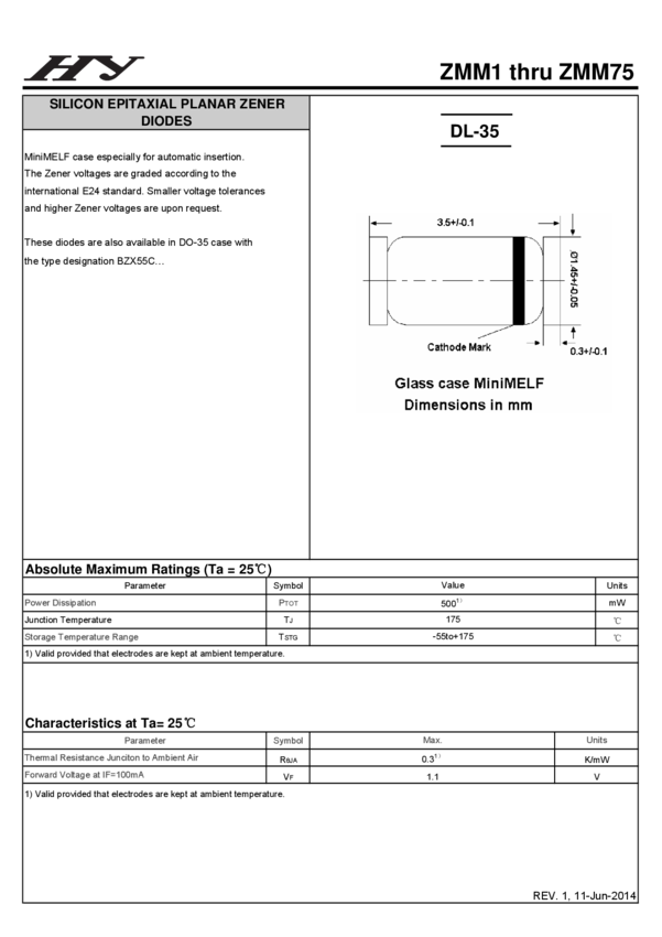 Dioda Zenera 3,3V 2% 0,5W