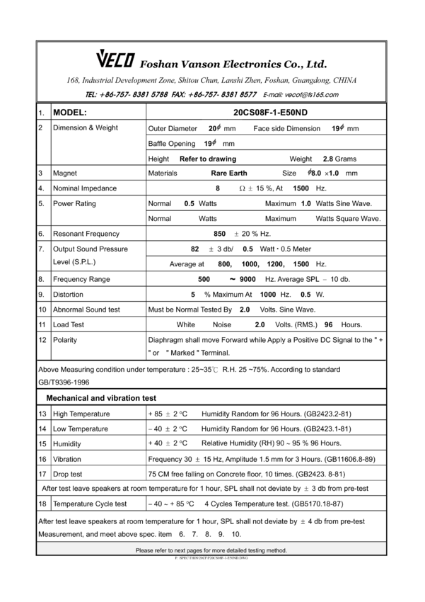 VEC-20CS08F-1-E50ND