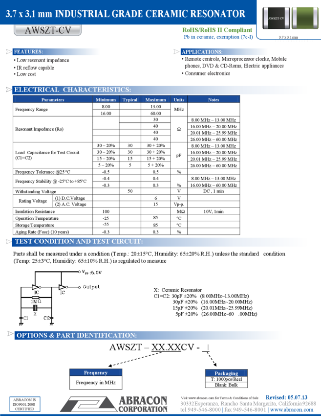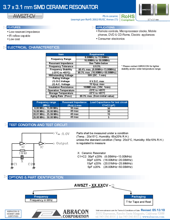 Crystal 8MHz 30pF ±0.5% 2-Pin CSMD T/R