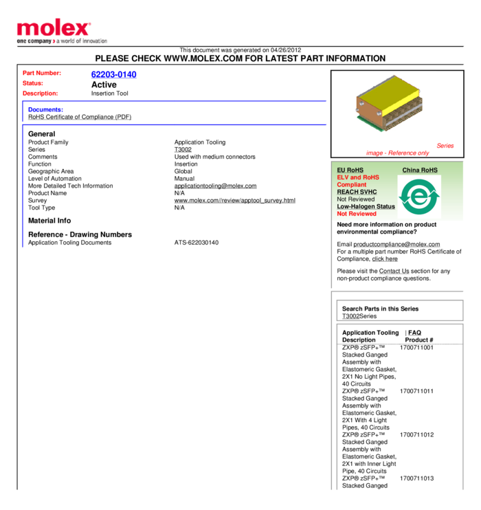 Insertion Tool for 75462, 75640, 76090, 76100, 76044, 76064 and 170071 Series Connectors
