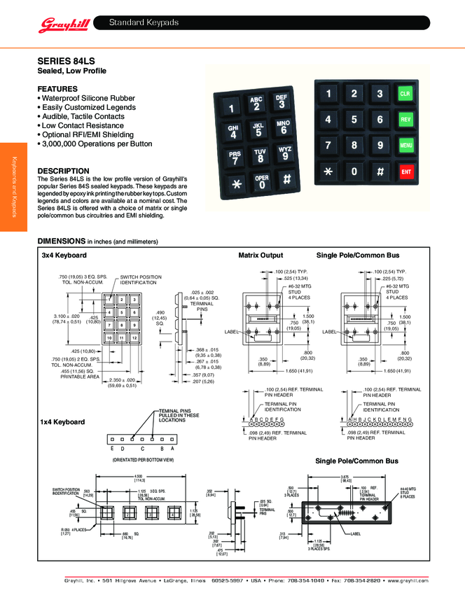 Keypad 16 Key Terminal Pins 10mA 24VDC 5.56N