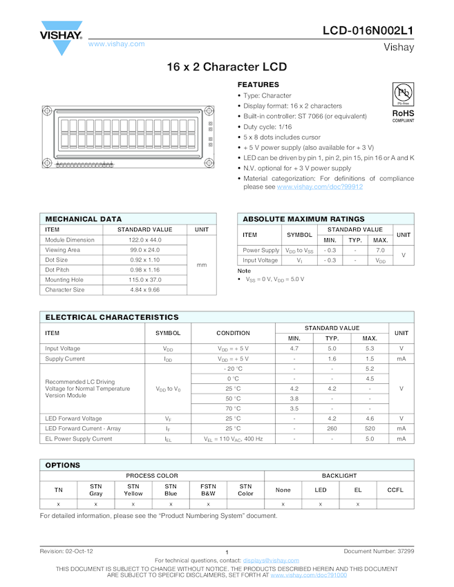 16 x 2 Character LCD