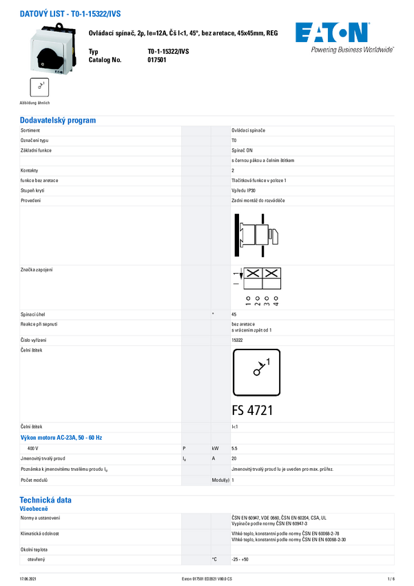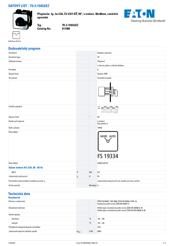 Eaton 017500 T0-3-15453/EZ Wyłącznik 1 szt.