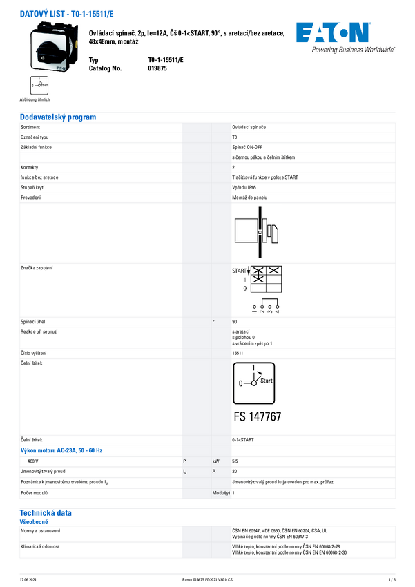 Eaton 019875 T0-1-15511/E Przycisk ON/OFF 1 szt.