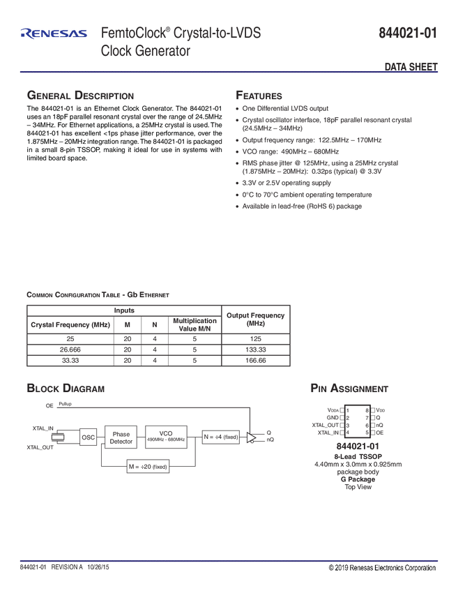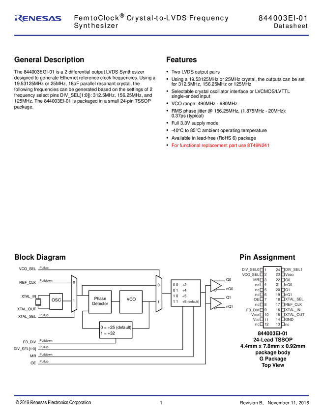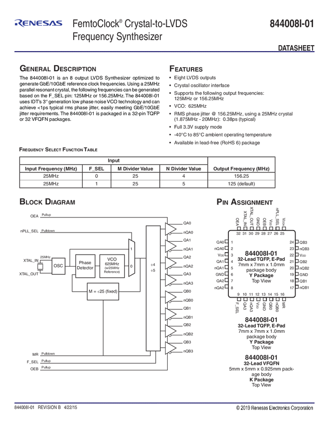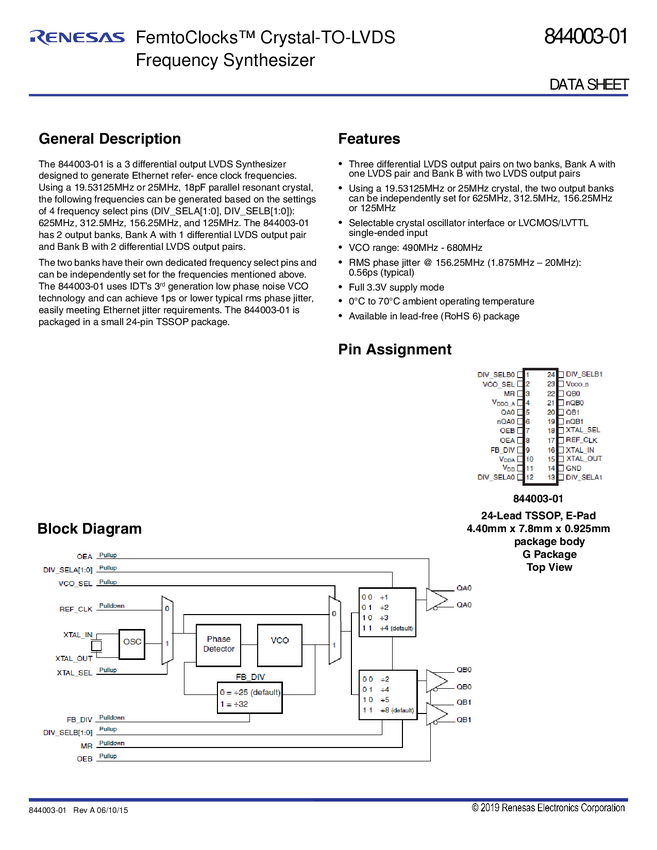 FemtoClock Crystal-to-LVDS Frequency Synthesizer